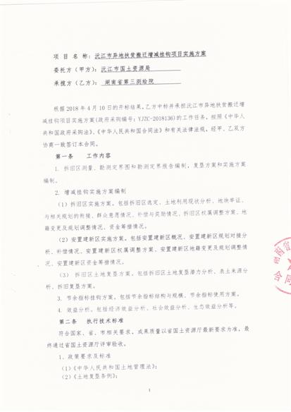 沅江市异地扶贫搬迁增减挂钩项目实施方案合同公示