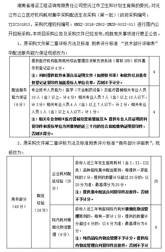 沅江市公立医疗机构耗材集中采购配送定点采购(第一批) 更正公告