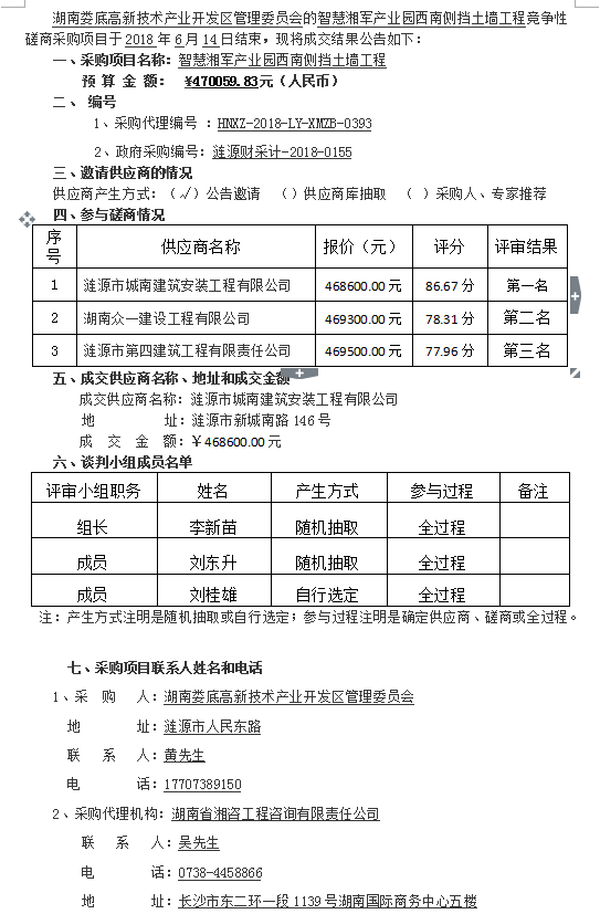 智慧湘军产业园西南侧挡土墙工程 竞争性磋商成交结果公告