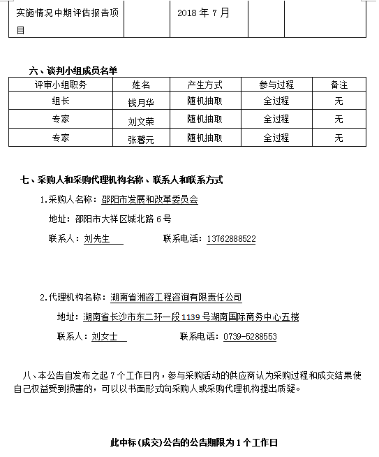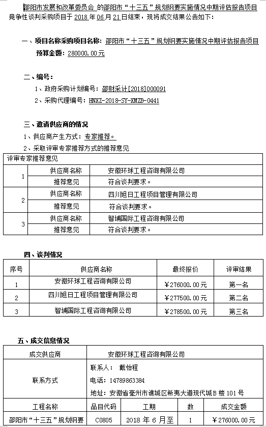 邵阳市“十三五”规划纲要实施情况中期评估报告项目谈判成交公告
