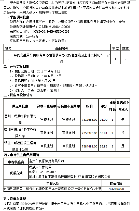 会同县基层公共服务中心建设项目办公配套建设及上墙资料制作、安装 公开招标中标公告