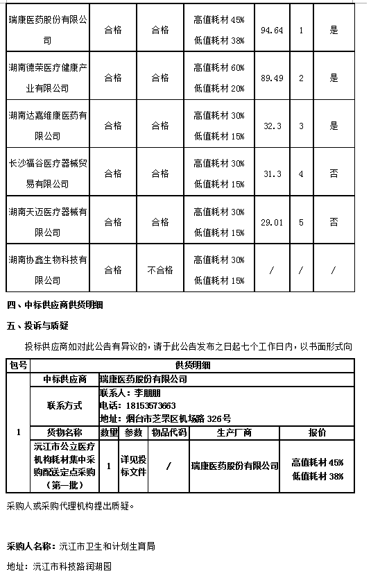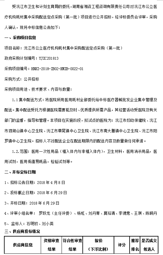 江市公立医疗机构耗材集中采购配送定点采购(第一批)公开招标中标公告