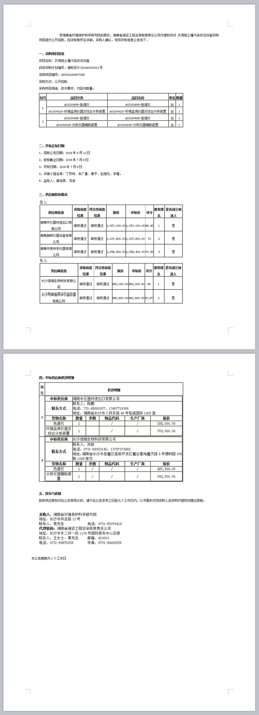 湖南省环境保护科学研究院农用地土壤污染状况详查公开招标中标公告