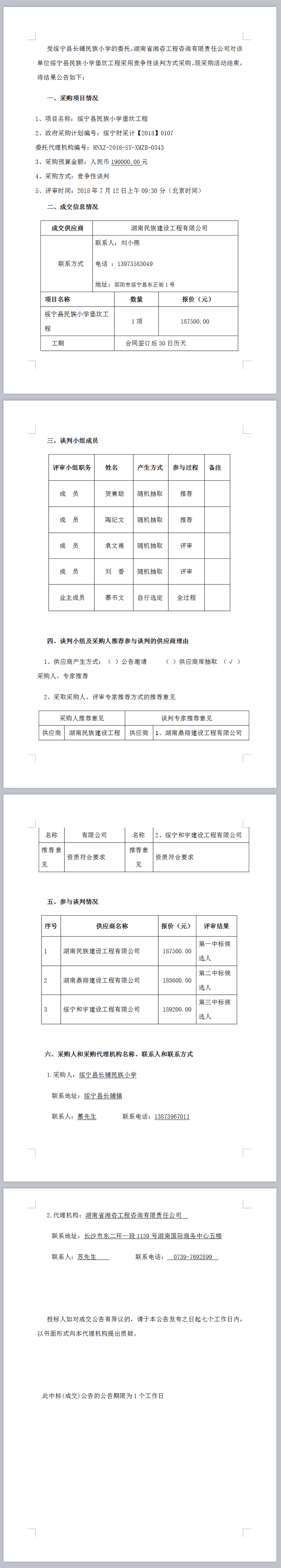 绥宁县民族小学堡坎工程谈判成交公告