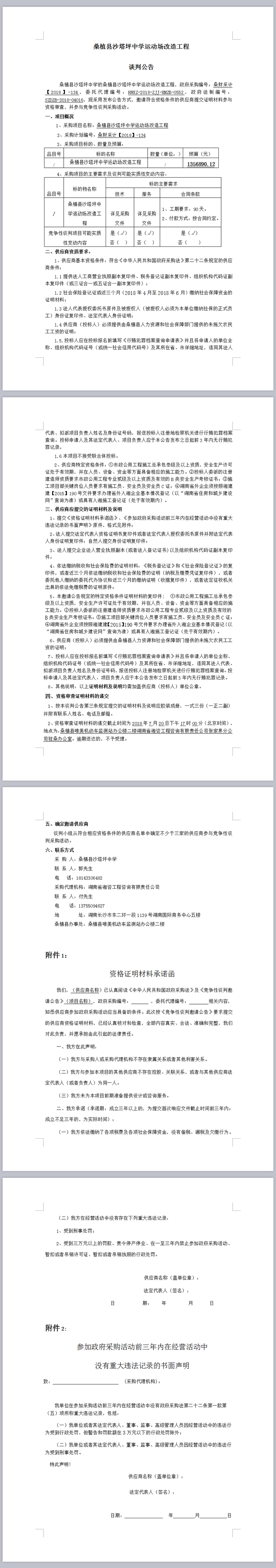 桑植县沙塔坪中学运动场改造工程谈判公告