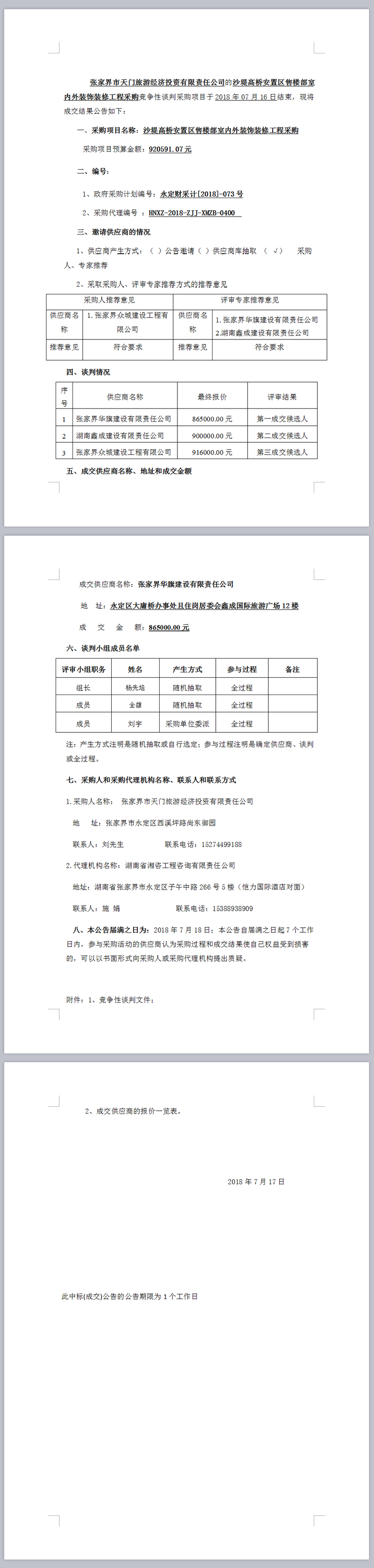 沙堤高桥安置区售楼部室内外装饰装修工程采购谈判成交公告