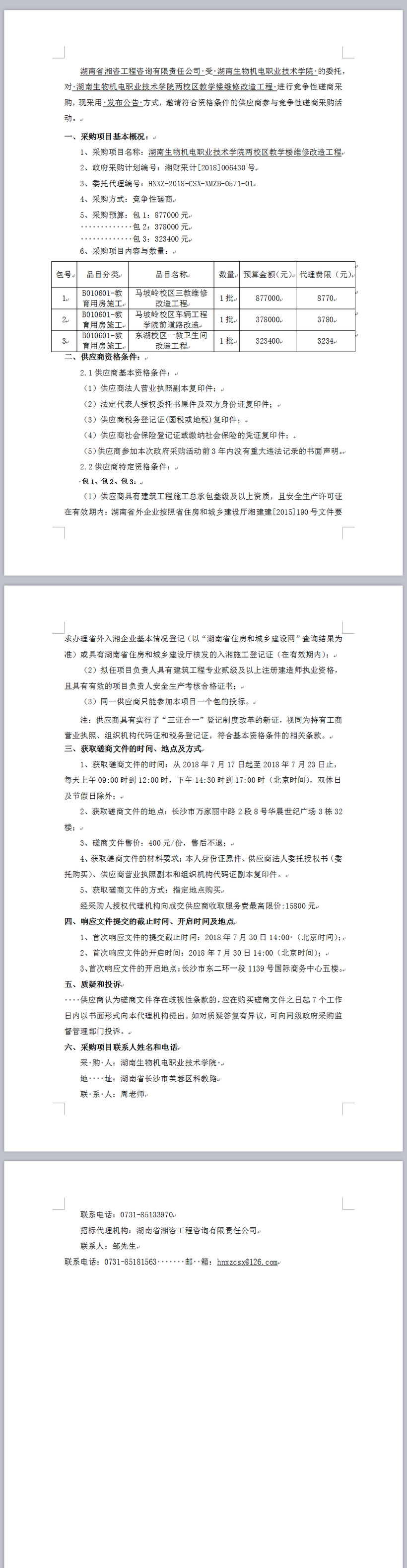 湖南生物机电职业技术学院两校区教学楼维修改造工程磋商邀请公告