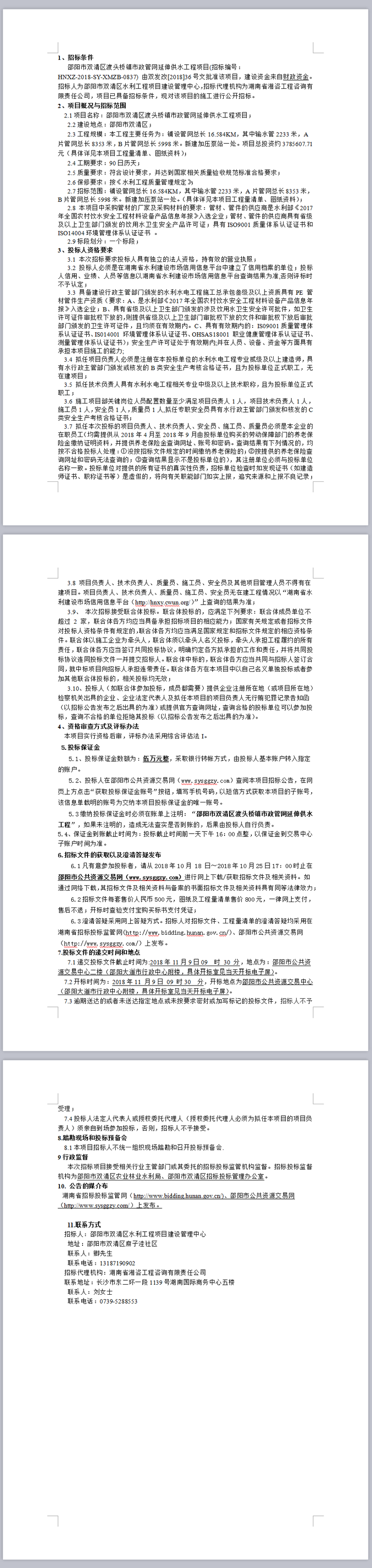 邵阳市双清区渡头桥镇市政管网延伸供水工程项目招标公告