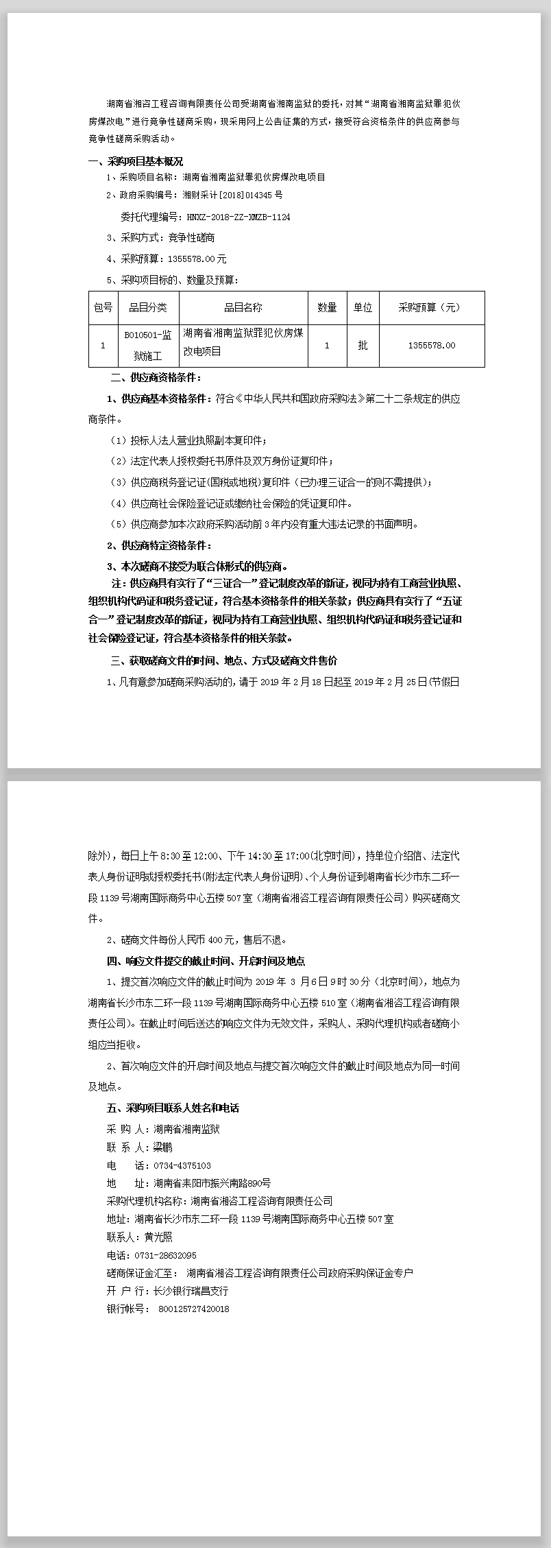 湖南省湘南监狱罪犯伙房煤改电项目磋商邀请