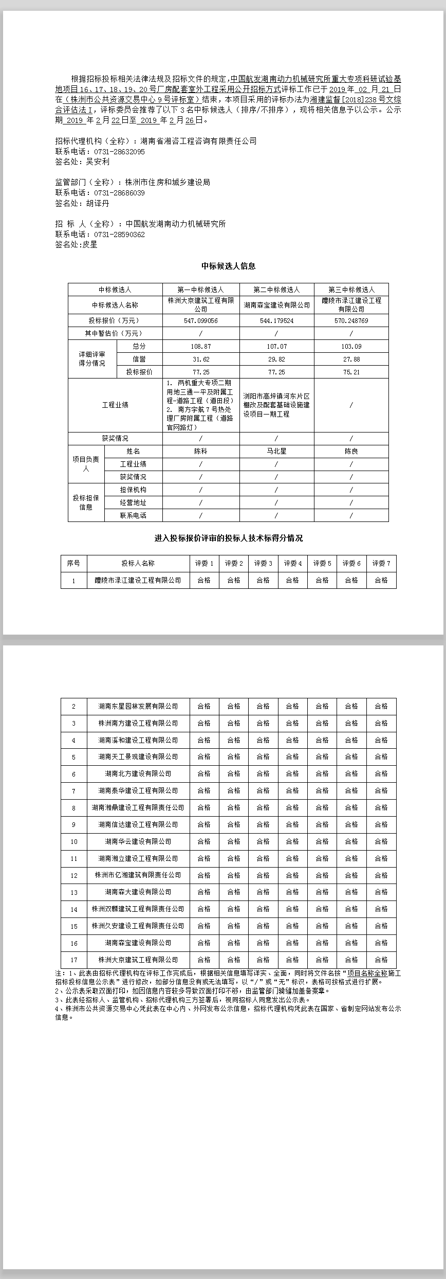 中国航发湖南动力机械研究所重大专项科研试验基地项目16、17、18、19、20号厂房配套室外工程招标投标信息公示表