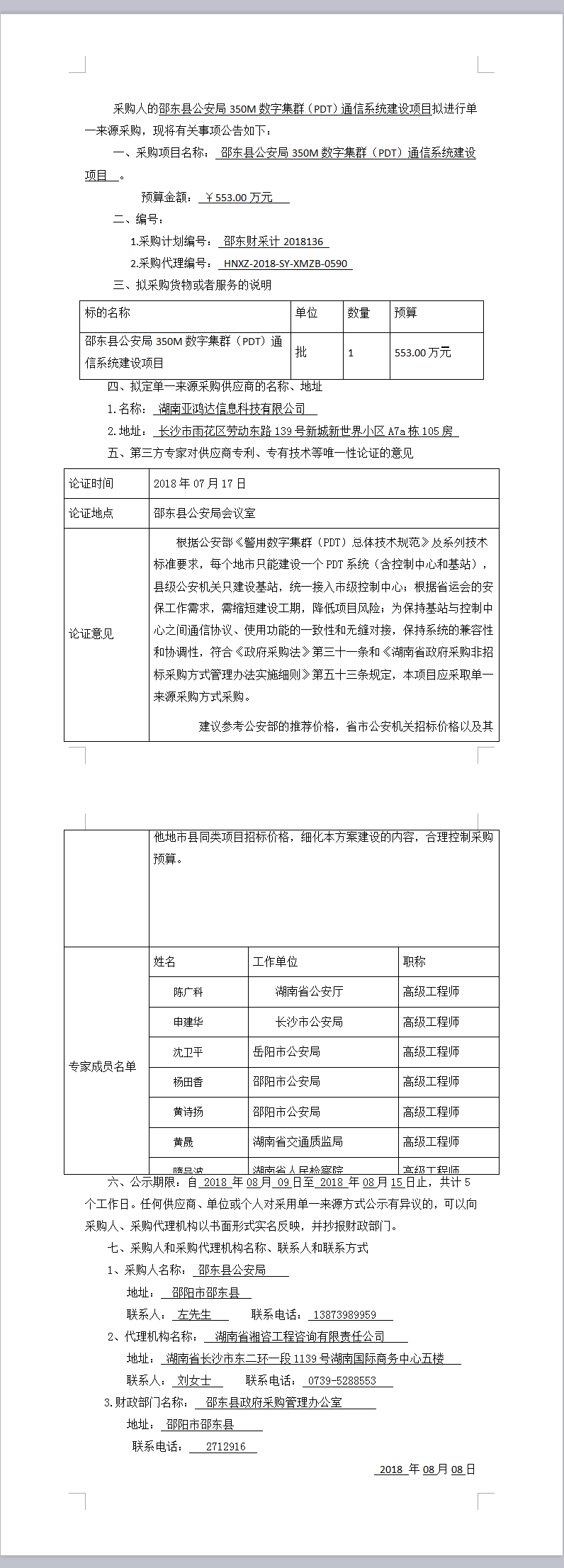 邵东县公安局350M数字集群(PDT)通信系统建设项目 单一来源采购公示