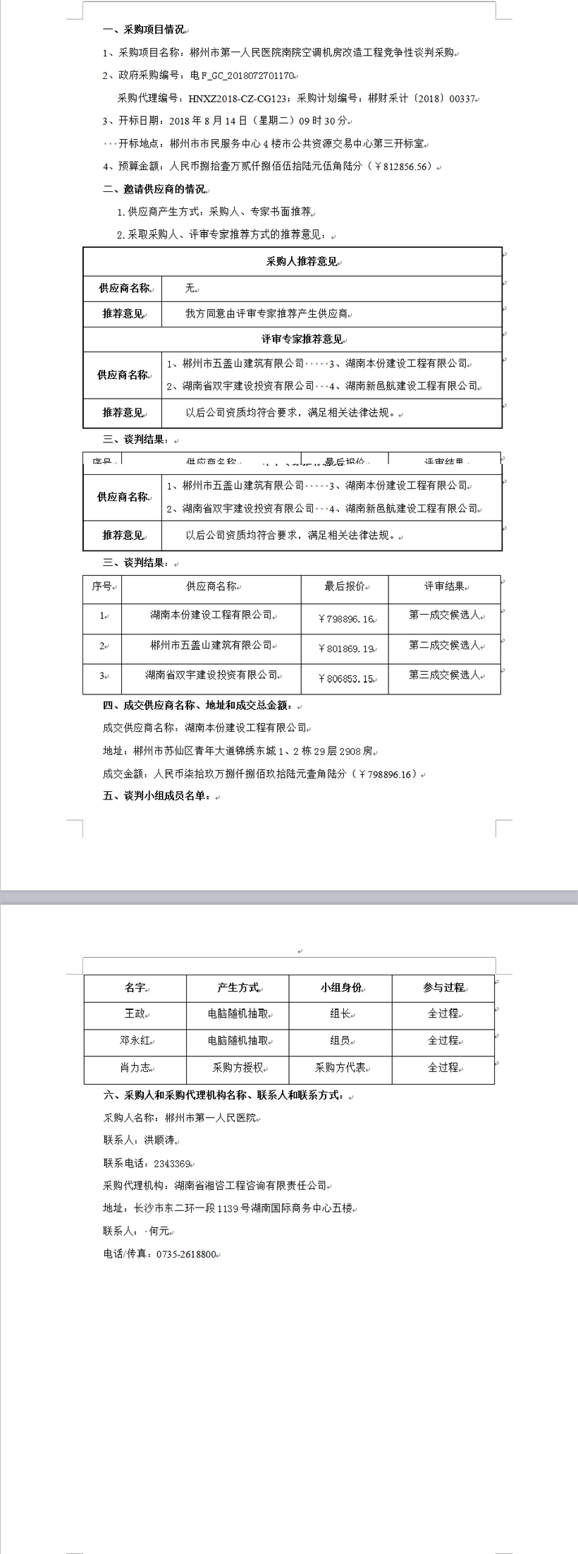 郴州市第一人民医院南院空调机房改造工程竞争性谈判采购成交公告