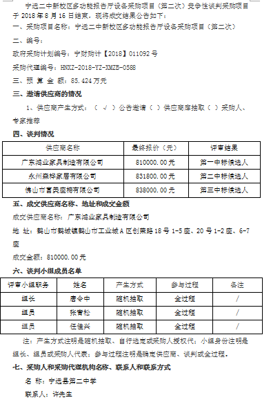宁远二中新校区多功能报告厅设备采购项目(第二次)竞争性谈判成交公告