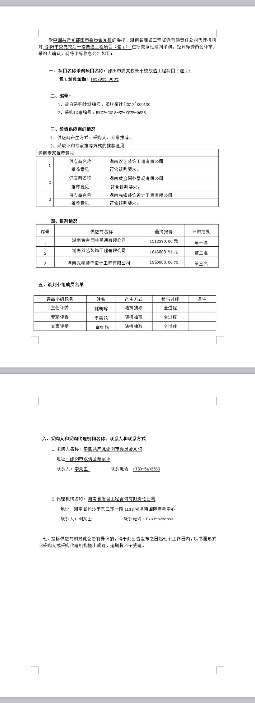 邵阳市委党校处干楼改造工程项目(包1)竞争性谈判成交公告