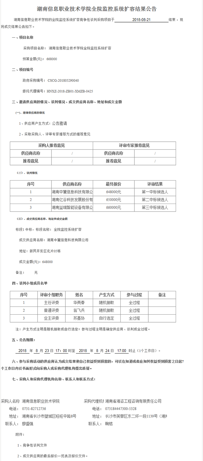 湖南信息职业技术学院全院监控系统扩容结果公告