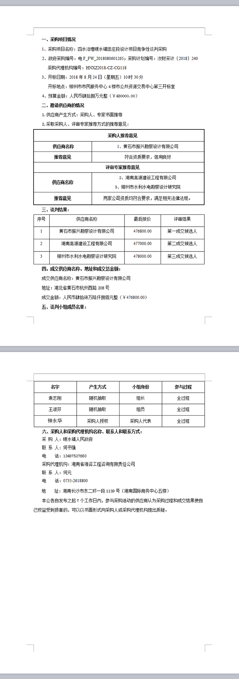 四水治理暖水镇田庄段设计项目竞争性谈判采购成交公告