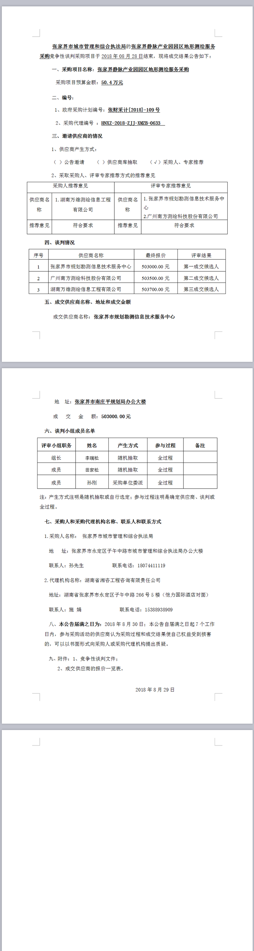 张家界静脉产业园园区地形测绘服务采购谈判成交公告
