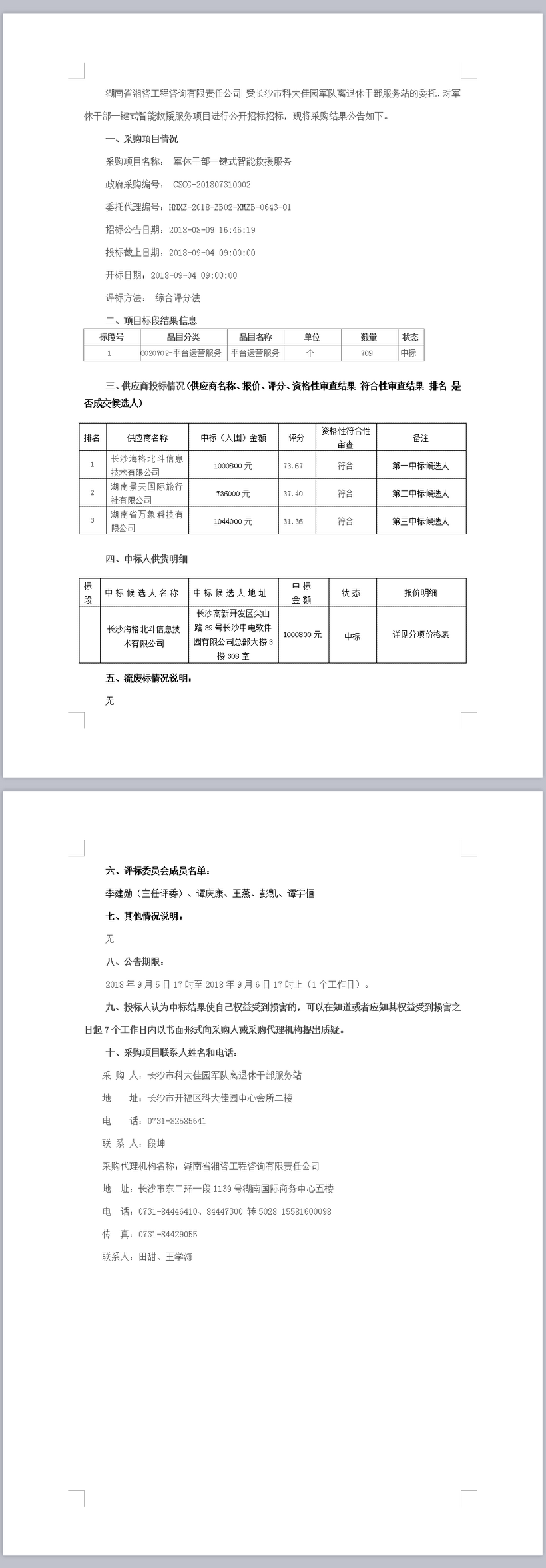 长沙市科大佳园军队离退休干部服务站军休干部一键式智能救援服务结果公告