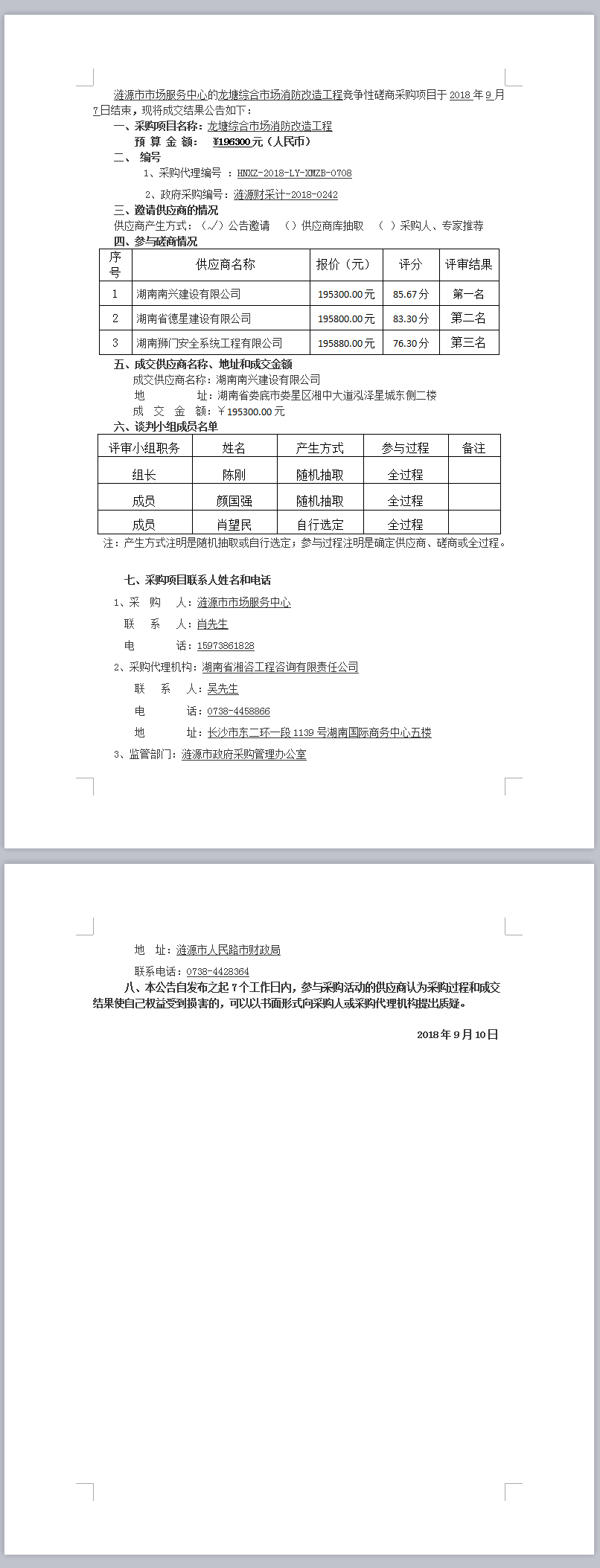 龙塘综合市场消防改造工程竞争性磋商成交结果公告