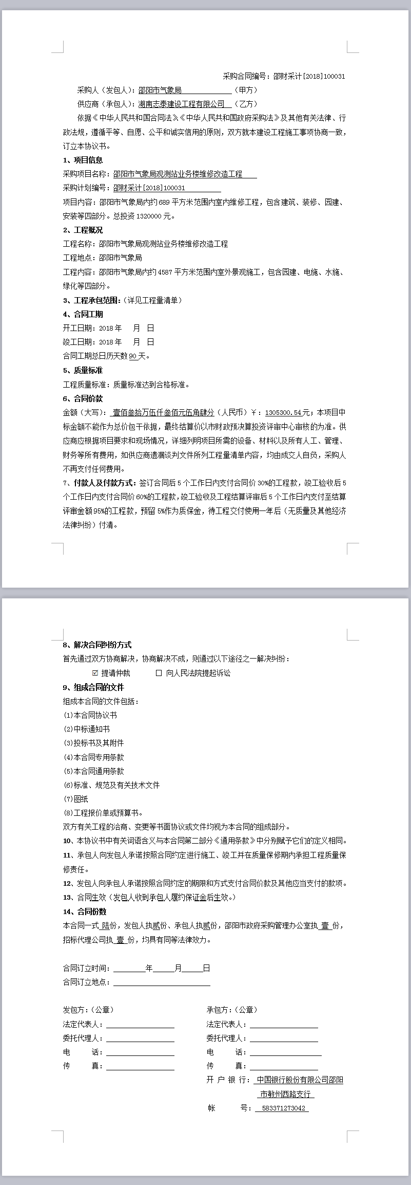 邵阳市气象局观测站业务楼维修改造工程政府采购合同公示