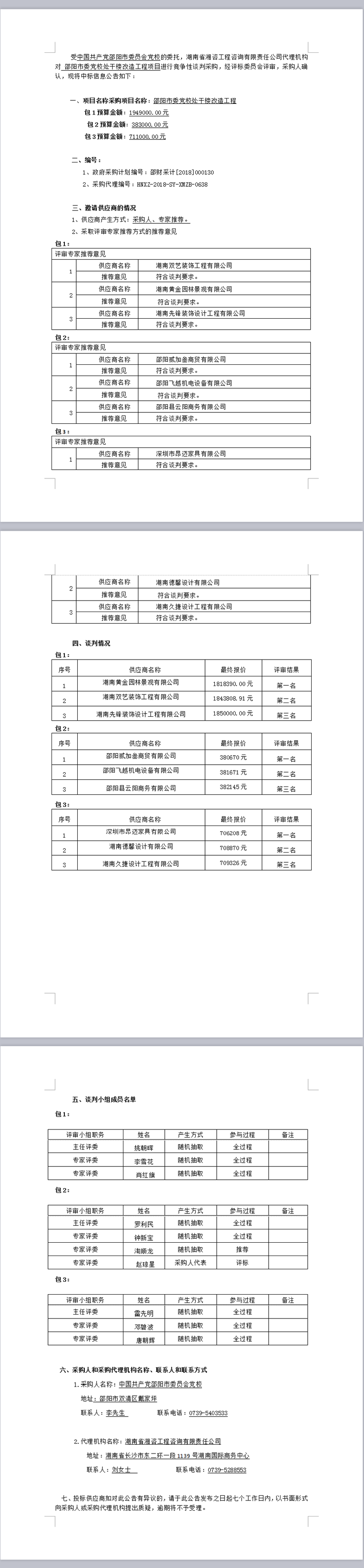邵阳市委党校处干楼改造工程项目竞争性谈判成交公告