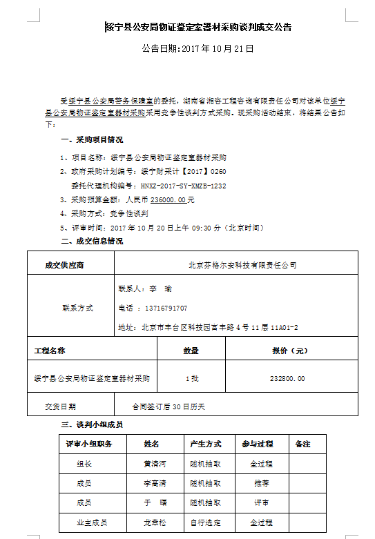 绥宁县公安局物证鉴定室器材采购谈判成交公告