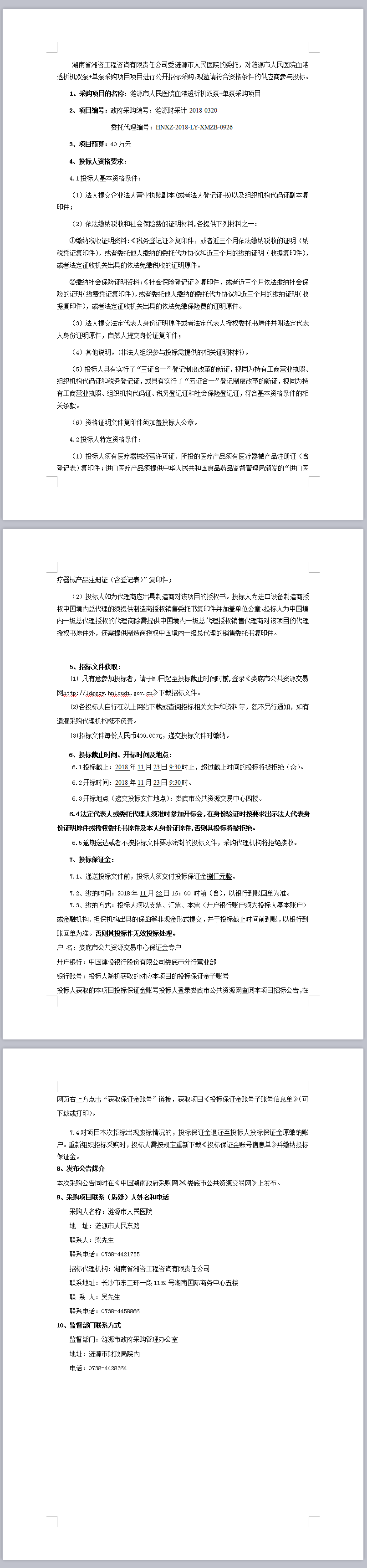 涟源市人民医院血液透析机双泵+单泵采购项目招标公告