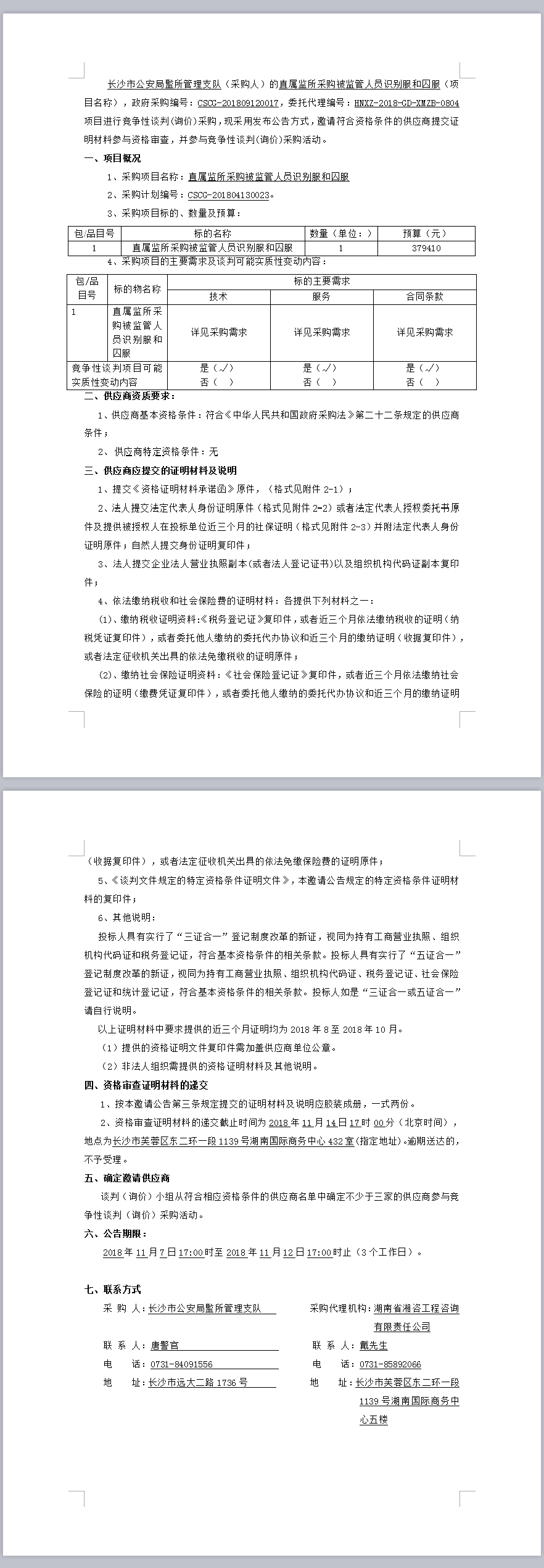 直属监所采购被监管人员识别服和囚服(第二次)竞争性谈判邀请公告