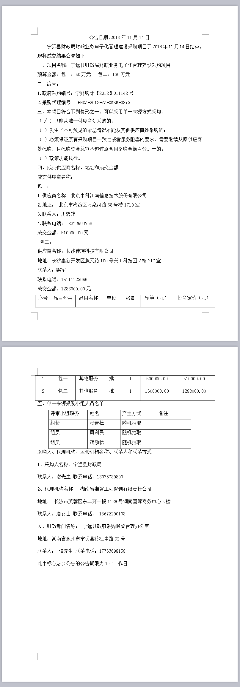 宁远县财政局财政业务电子化管理建设采购项目单一来源成交公告