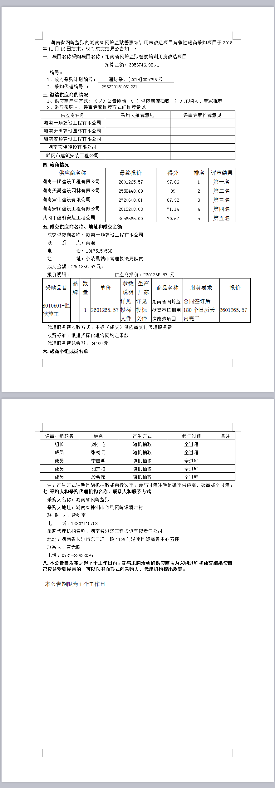 湖南省网岭监狱警察培训用房改造项目竞争性磋商成交公告