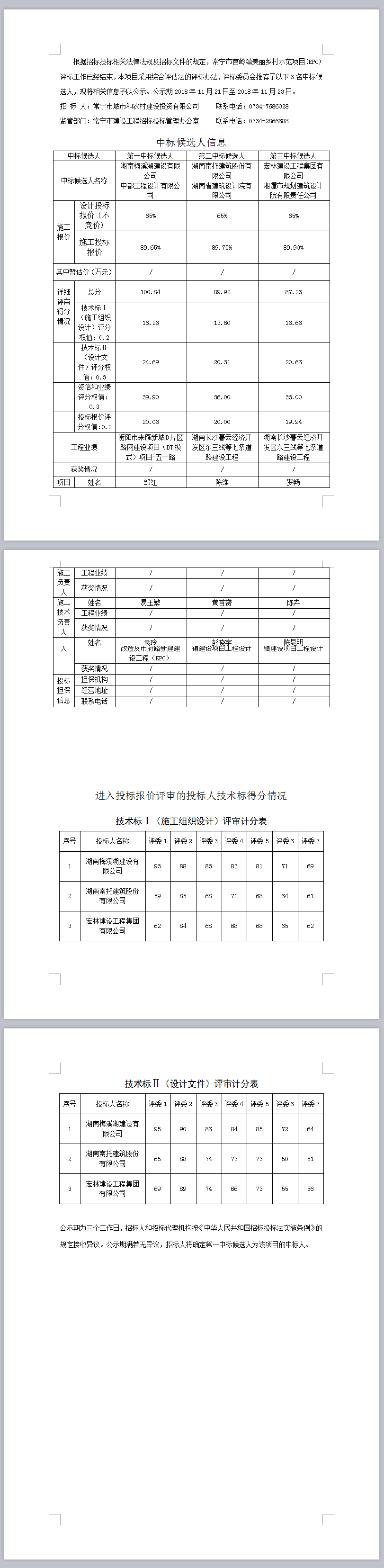 常宁市官岭镇美丽乡村示范项目(EPC)中标候选人公示