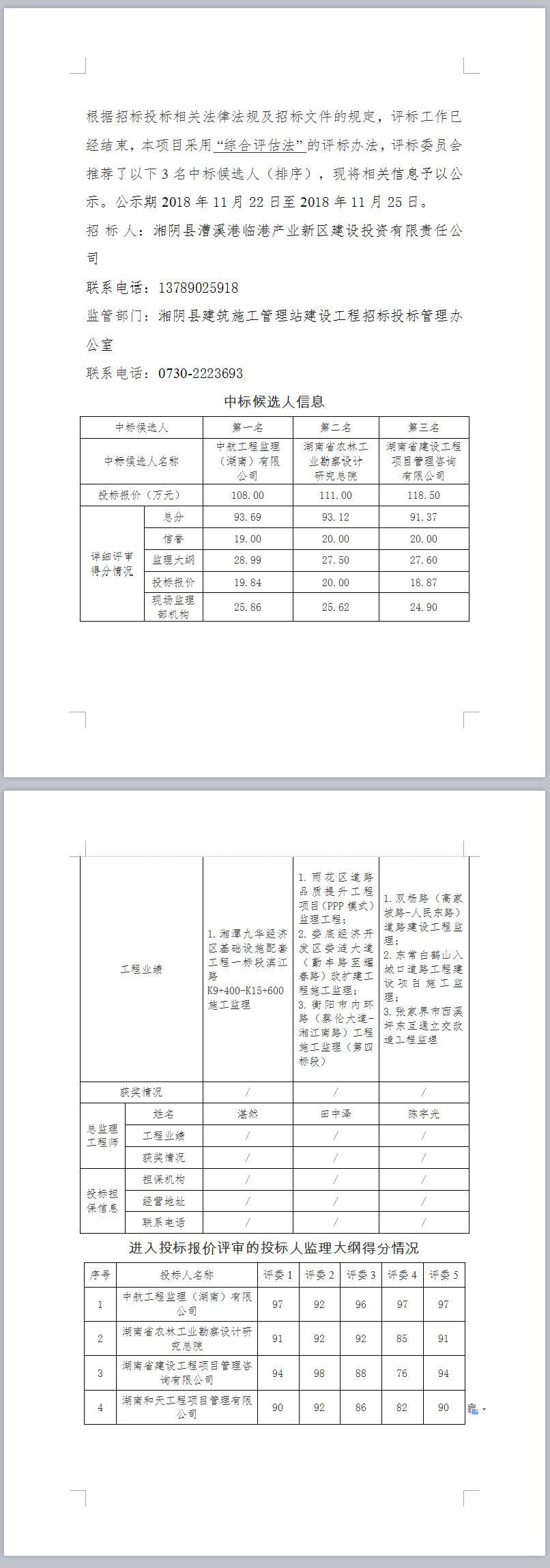 湖南湘江流域湘阴段漕溪港水环境(黑臭污水)综合治理工程二期监理招标投标信息公示表
