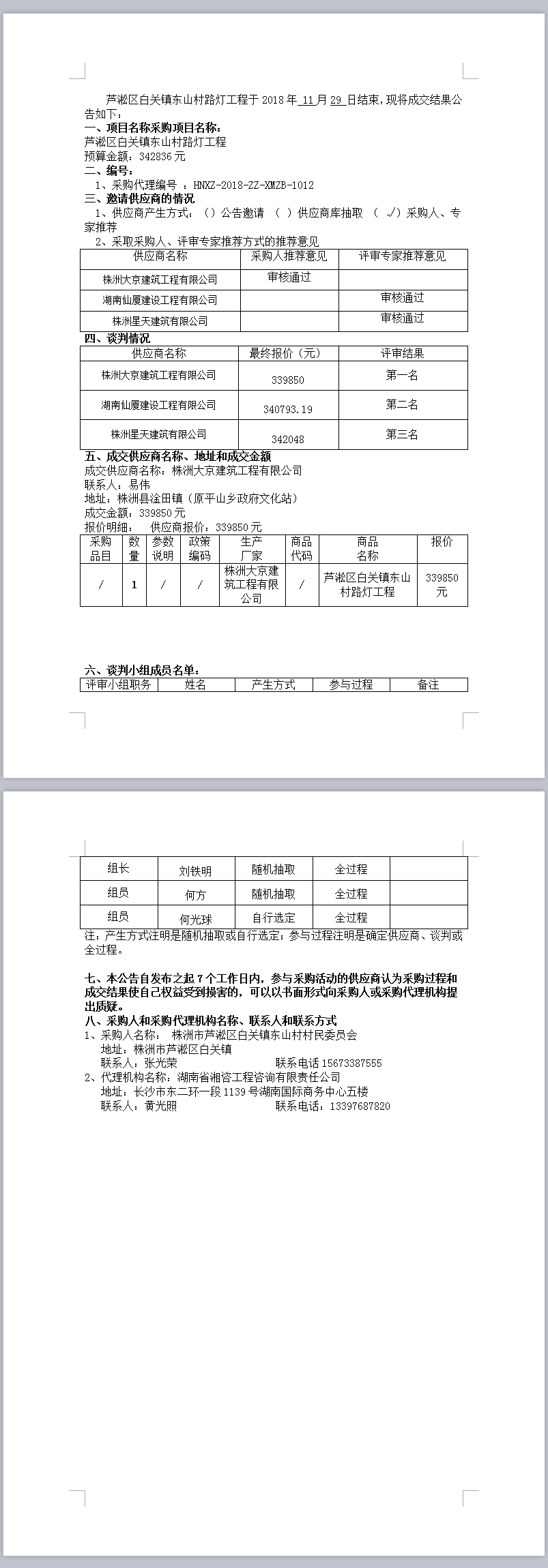 芦淞区白关镇东山村路灯工程 竞争性谈判成交公告