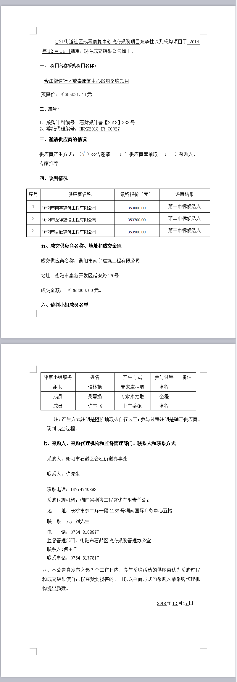 合江街道社区戒毒康复中心政府采购项目成交公告