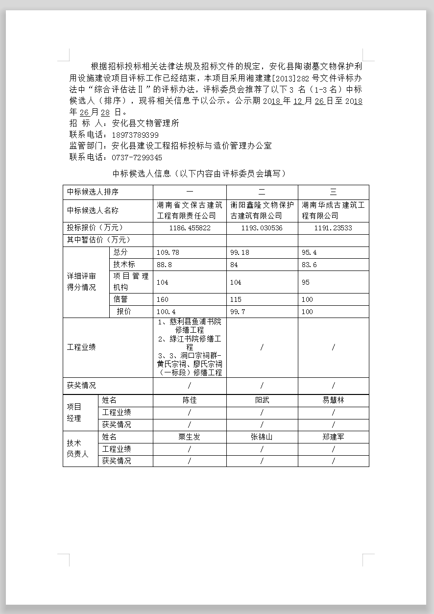 安化县陶澍墓文物保护利用设施建设项目招标投标信息公示表