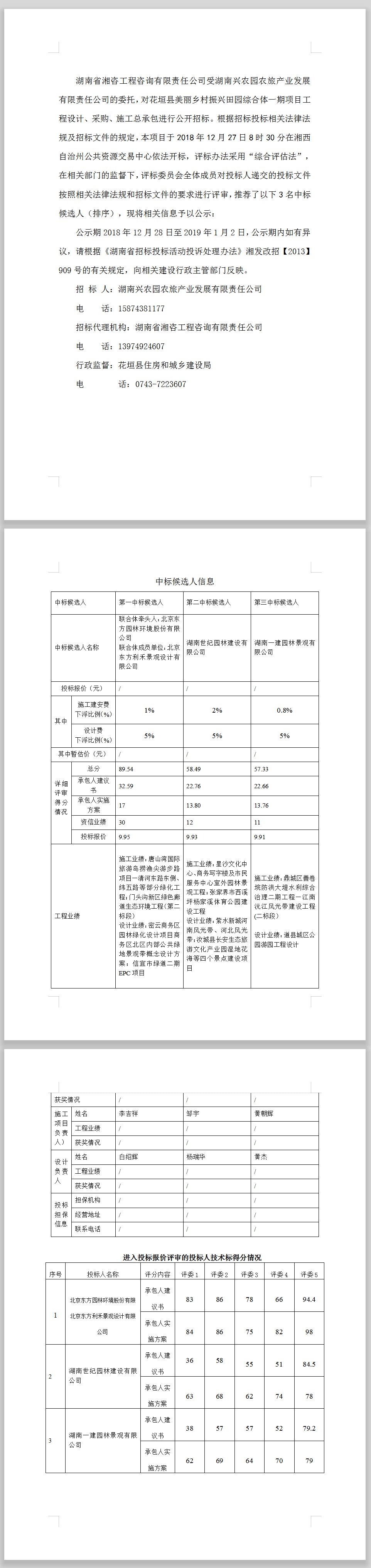 花垣县美丽乡村振兴田园综合体一期项目工程设计、采购、施工总承包中标候选人公示