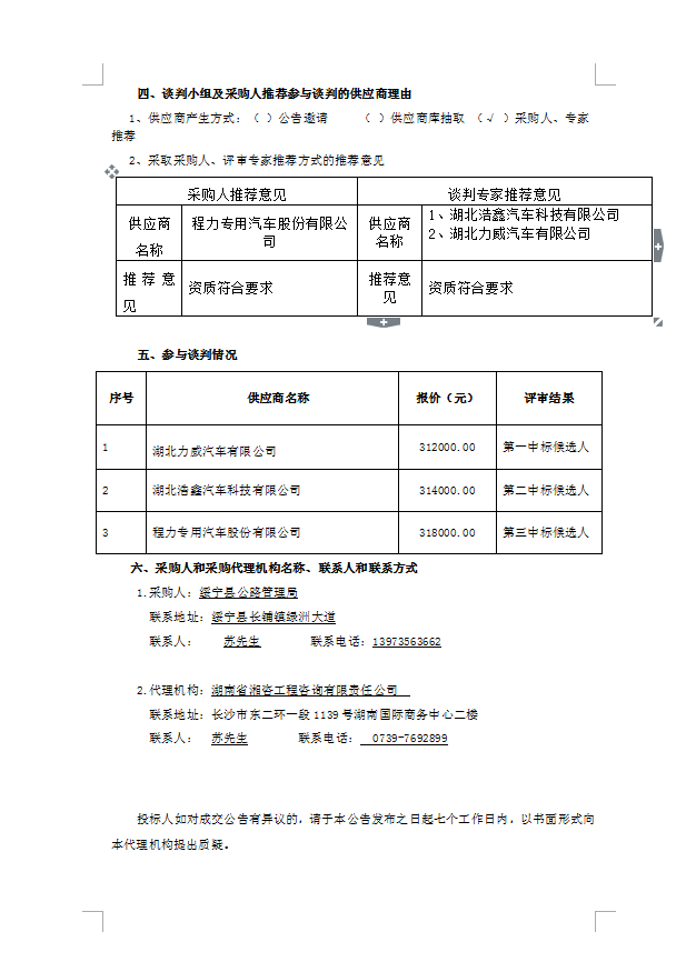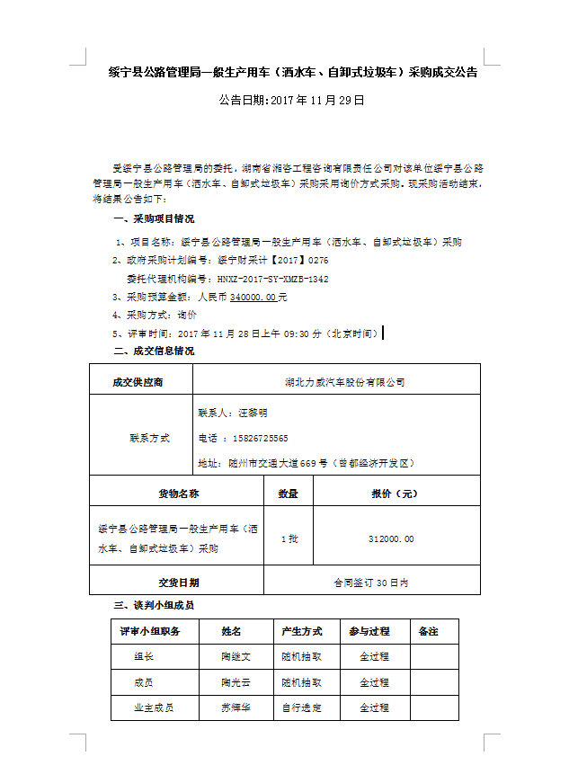绥宁县公路管理局一般生产用车(洒水车、自卸式垃圾车)采购成交公告
