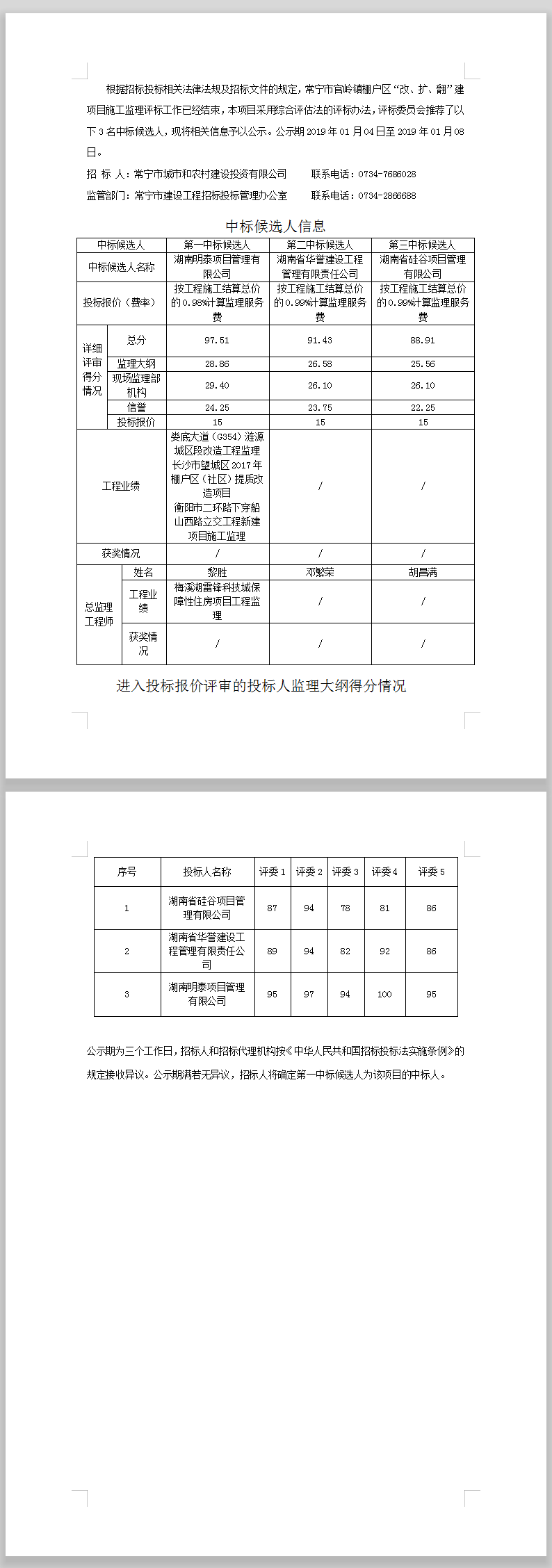 常宁市官岭镇棚户区“改、扩、翻”建项目施工监理中标候选人公示