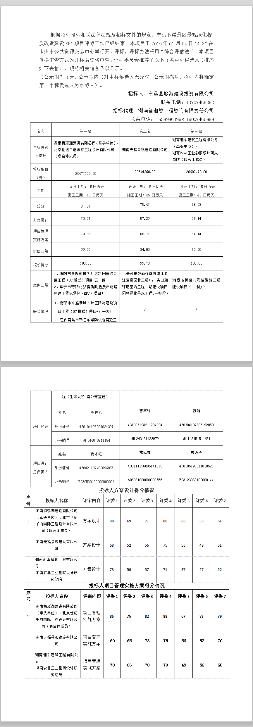 宁远下灌景区景观绿化提质改造建设EPC项目 中标候选人公示