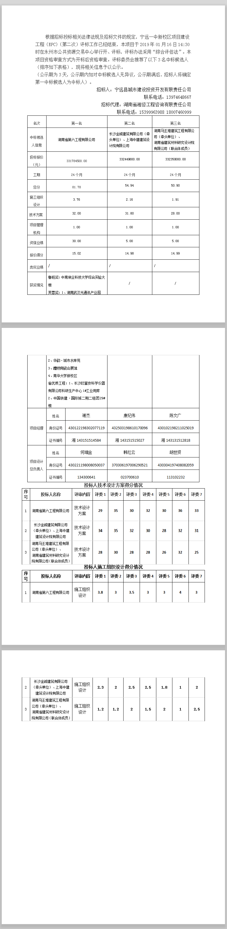 宁远一中新校区项目建设工程(EPC)(第二次) 中标候选人公示