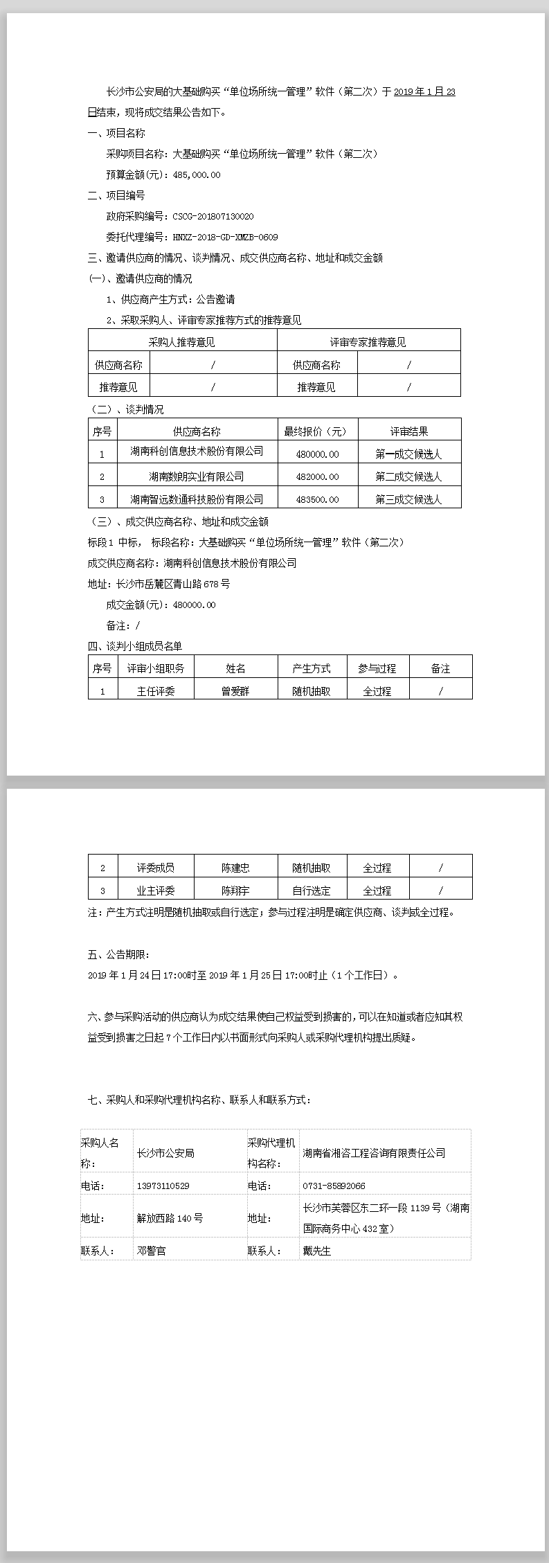 大基础购买“单位场所统一管理”软件(第二次) 结果公告