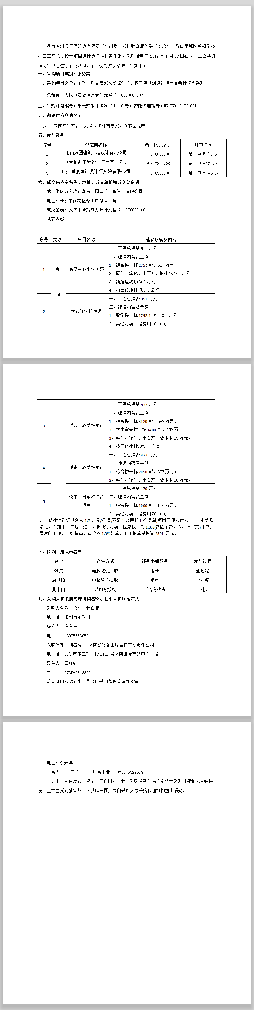 永兴县教育局城区乡镇学校扩容工程规划设计项目竞争性谈判采购成交公告