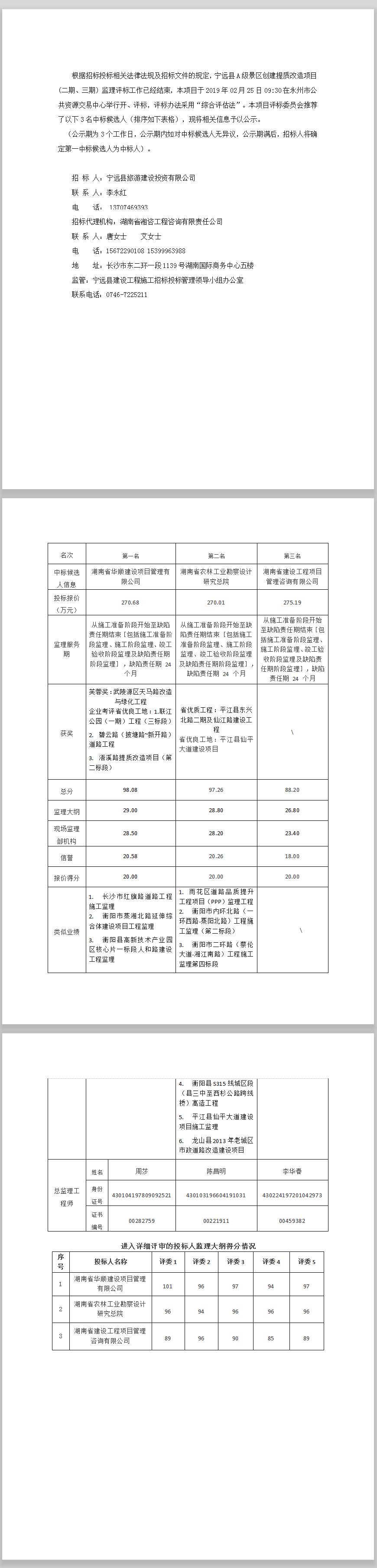 宁远县A级景区创建提质改造项目(二期、三期)监理中标候选人公示
