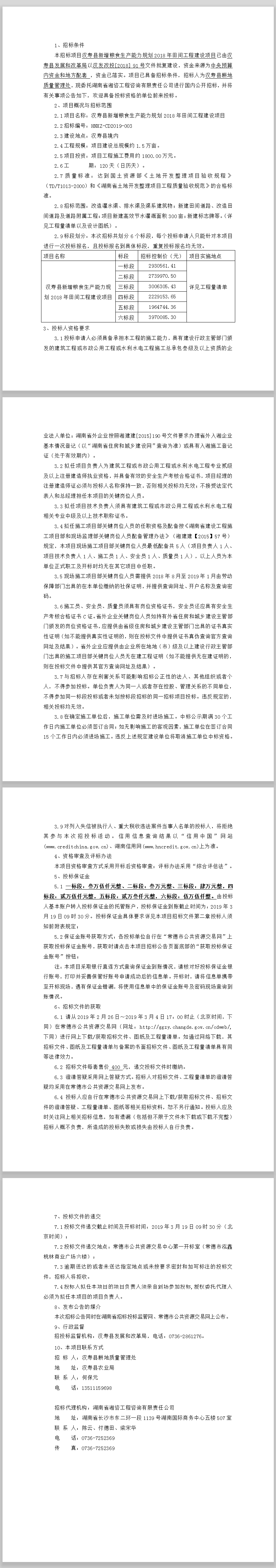 汉寿县新增粮食生产能力规划2018年田间工程建设项目 招标公告