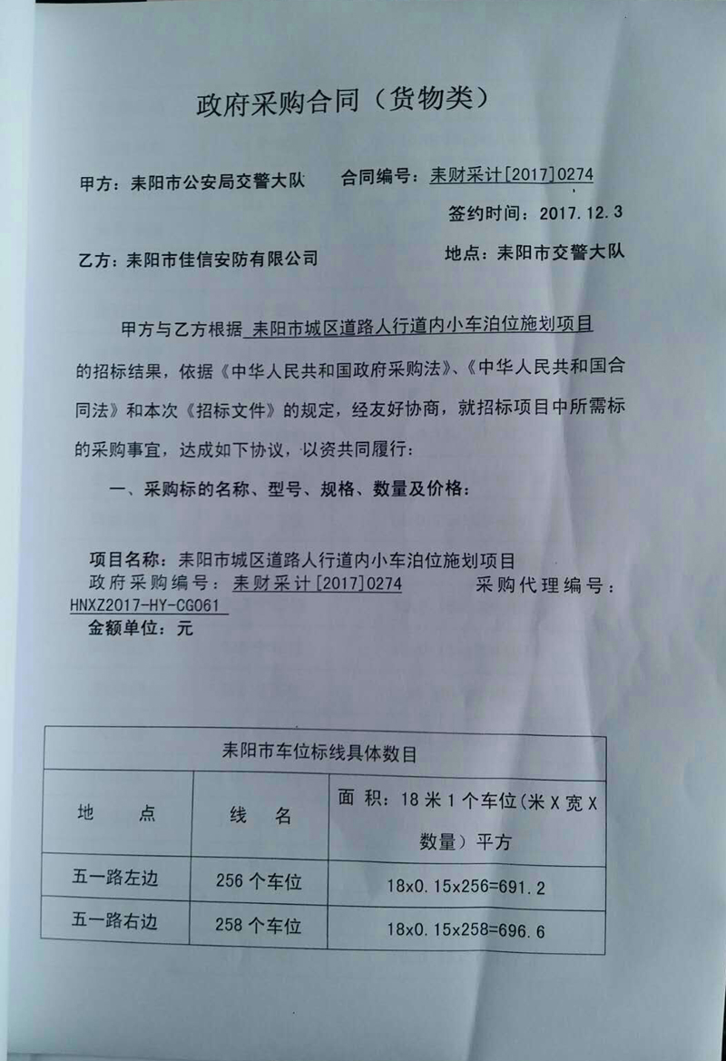 耒阳市城区道路人行道内小车泊位施划项目合同公示
