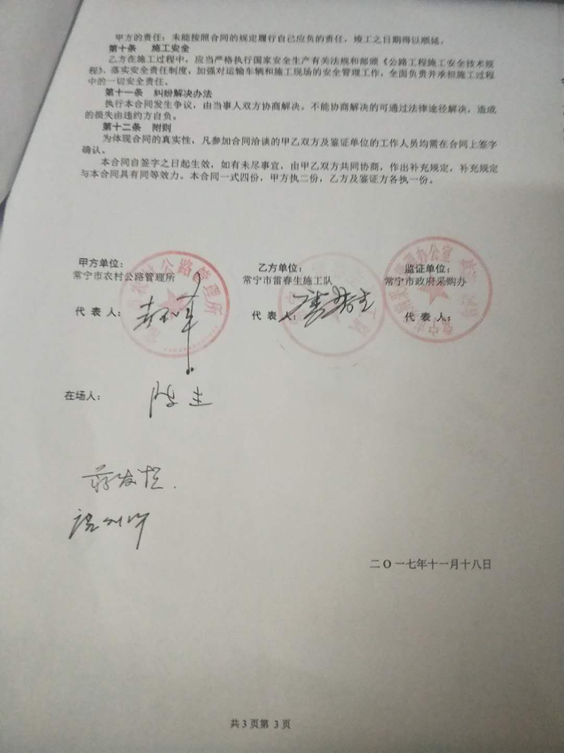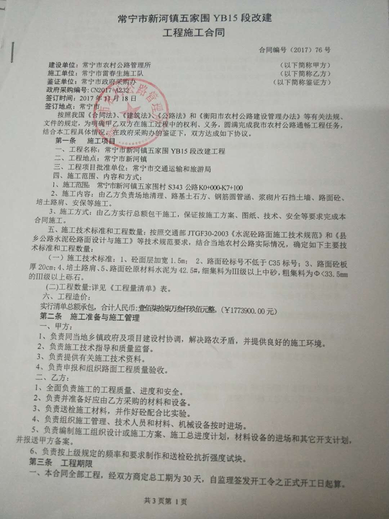 常宁市新河镇五家围村YB15段改建工程合同公示