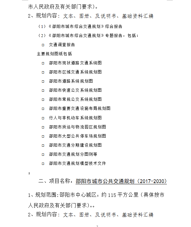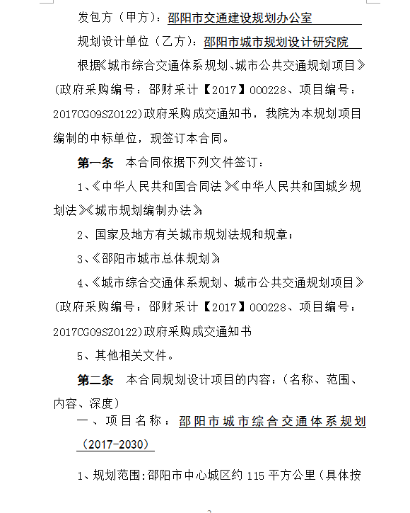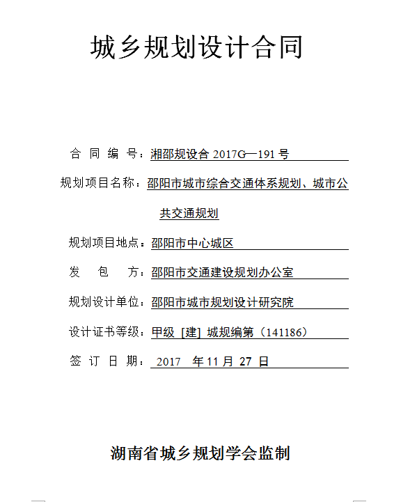 邵阳市城市综合交通体系规划、城市公共交通规划合同公示