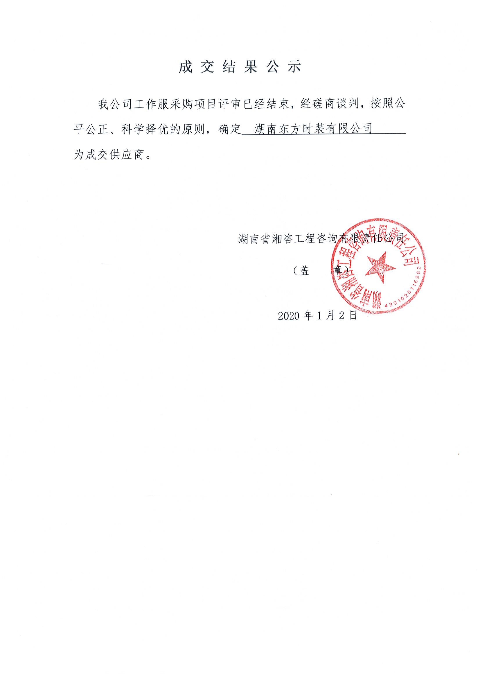 湖南省湘咨工程咨询有限责任公司工作服采购项目成交结果公示
