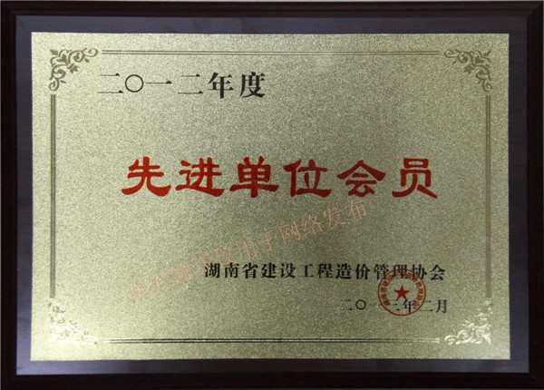 热烈庆祝我司荣获湖南省造价工程管理协会2012年度先进单位会员