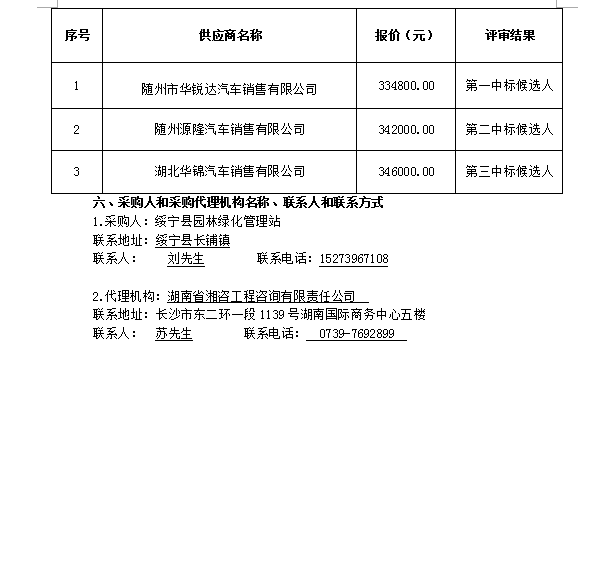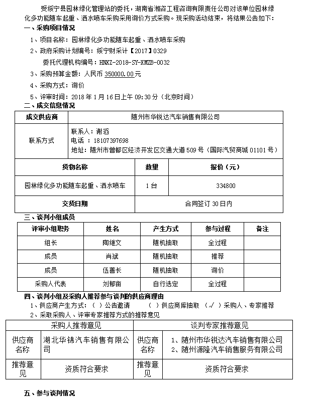 园林绿化多功能随车起重、洒水喷车采购成交公告